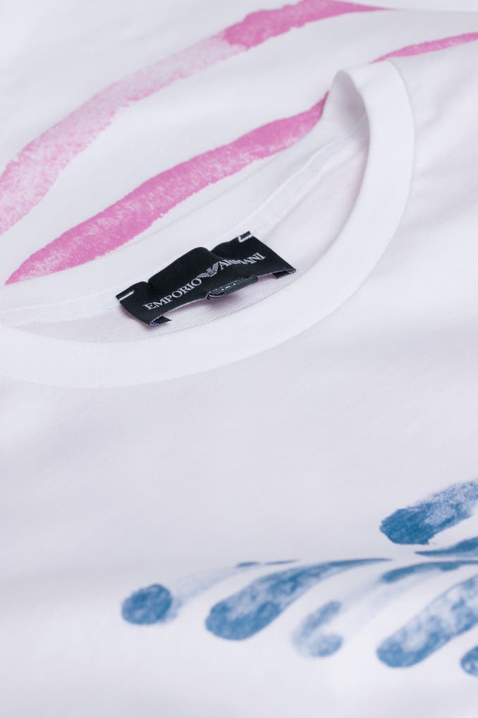 Entdecken Sie dieses stylische Set mit zwei weißen T-Shirts von EMPORIO ARMANI, für Ihre kleine Fashionista. Hergestellt aus weicher, reiner Baumwolle in einem geraden Schnitt, bieten sie nicht nur Komfort, sondern auch Vielseitigkeit in der Kombination mit anderen Kleidungsstücken.