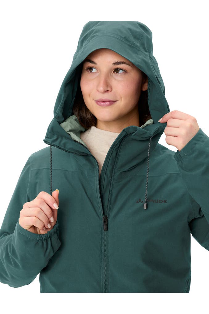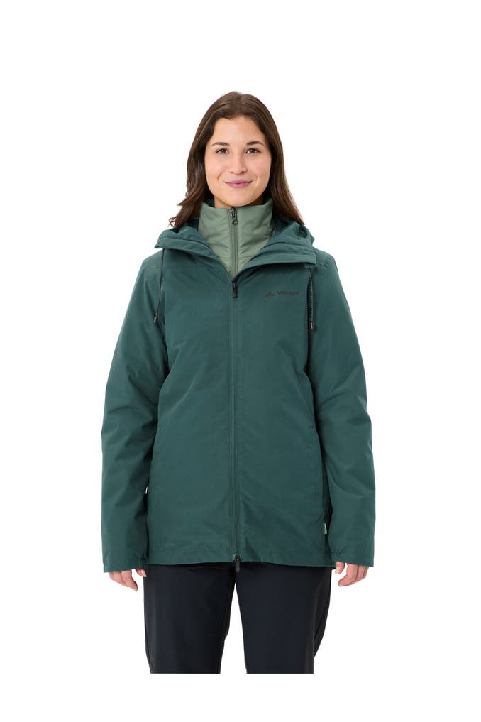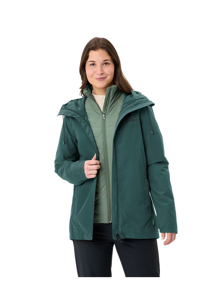 Zwei Jacken für vier Jahreszeiten: Die urbane und umweltfreundliche Women's Mineo 3in1 Jacket ist durch ihre herausnehmbare, gefütterte Innenjacke ein modischer Stadtbegleiter das ganze Jahr hindurch. Die Außenjacke der 3-in-1-Jacke für Damen wurde zu 100% aus recycelten PET-Flaschen hergestellt und schont damit wertvolle Ressourcen. Sie hat zwei Reißverschluss-Eingrifftaschen, eine Einhand-Kapuzenverstellung und ein etwas länger geschnittenes Rückenteil, damit auch beim Fahrradfahren die untere Partie schön geschützt bleibt. Sie ist außerdem ein echter Wetterprofi - denn diese Jacke ist wasserdicht, winddicht und atmungsaktiv. Die wattierte Innenjacke der 3-in-1-Jacke hält den Körper an eisigen Wintertagen schön warm und ist auch solo getragen durch ihre leichte Steppung ein echtes Schmuckstück. Beide Damenjacken - Außen- und Innenjacke - bestehen aus umweltfreundlichem, bluesign®-zertifiziertem Material und werden ihrer Besitzerin über Jahre hinweg viel Freude machen. Als Mitglied mit Leader Status bei der unabhängigen Organisation Fair Wear engagiert sich VAUDE für faire Arbeitsbedingungen und faire Löhne. Das VAUDE Green Shape-Label steht für ein umweltfreundliches, funktionelles Produkt aus nachhaltigen Materialien.