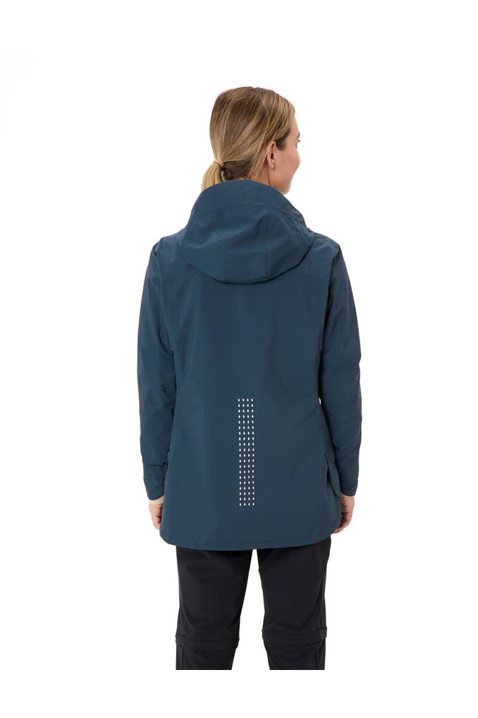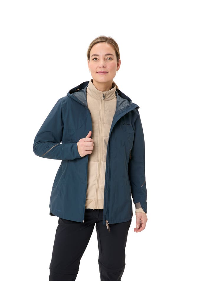 Mit der Yaras 3in1 Jacket sind Radlerinnen auf Radreisen und im Winter gegen schlechtes Wetter bestens gerüstet! Die 2,5-lagige Ceplex Active-Membran hält Nässe zuverlässig draußen, wasserdichte Taschen sorgen zudem dafür, dass Karte, Smartphone und andere Wertsachen stets bestens geschützt und trocken bleiben. Die einstellbare Kapuze hält den Kopf auch bei anhaltend schlechtem Wetter trocken, das durchdachte Belüftungssystem sorgt zudem für ein optimales Trageklima. Doch auch die Innenjacke geizt nicht mit Funktion - sie ist im Brustbereich und an den Schultern mit einer Wattierung aus PrimaLoft® Black Insulation 100%Eco versehen, die an sensiblen Stellen für mehr Wärme an kalten Wintertagen sorgt. Zwei Reißverschlusstaschen und Stretch-Einlagen bieten viel Flexibilität in jeder Tragesituation, der Stehkragen verringert Zugluft und garantiert ein ausgezeichnetes Tragegefühl. Die Materialien werden der Umwelt zuliebe nach dem bluesign®-Standard hergestellt. In Kombination mit der Yaras Rain Pants wird das Regenoutfit komplett. Inklusive reflektierenden Elementen. Dieses Produkt ist mit Eco Finish umweltfreundlich wasserabweisend ohne Fluorcarbone (PFC) hergestellt. Das VAUDE Green Shape-Label steht für ein umweltfreundliches, funktionelles Produkt aus nachhaltigen Materialien.