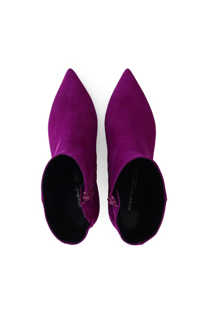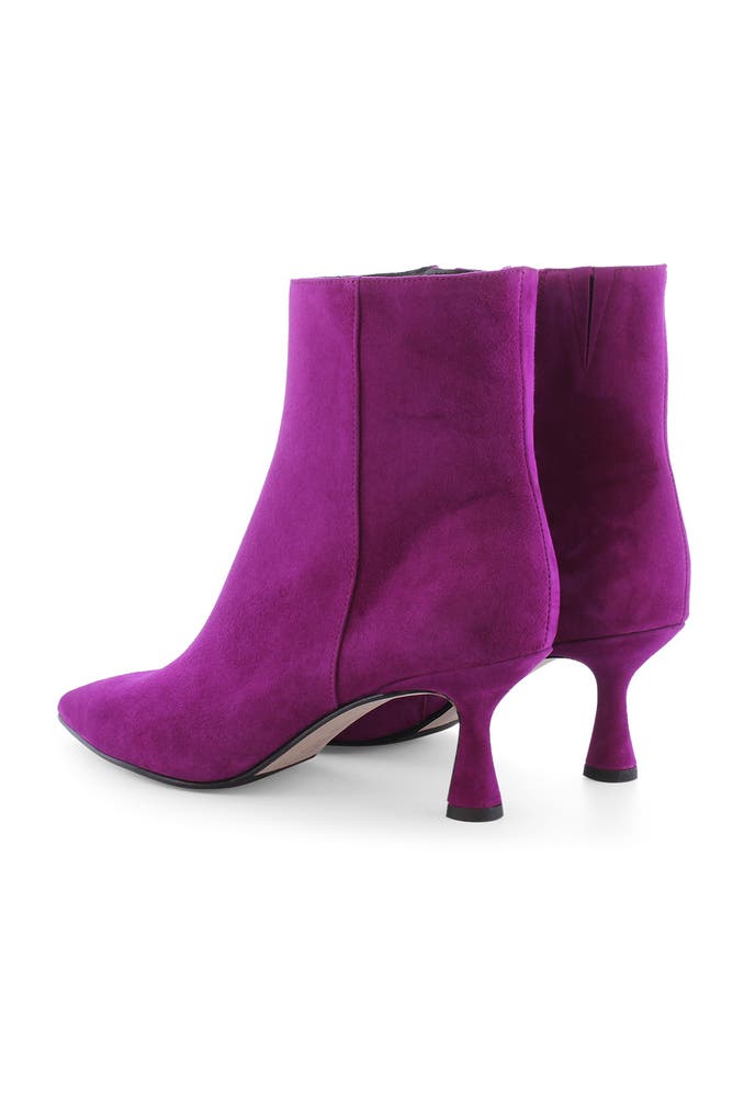 Setzen Sie ein modernes Statement mit dem extravaganten Bootie CHRIS von Kennel & Schmenger. Das lilafarbene Samtziegenleder sorgt für einen ausdrucksstarken Look. Das feminine Design der Stiefelette wird von dem leicht geschwungenen Absatz noch zusätzlich betont.