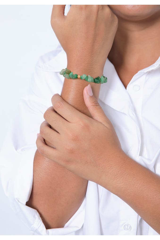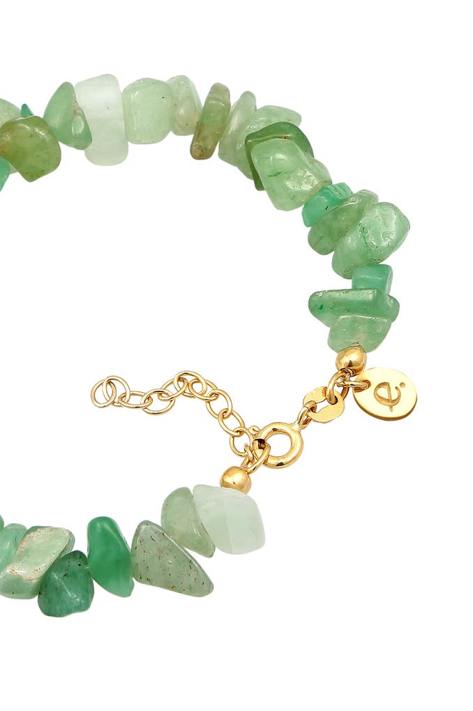 Wunderschönes Armband mit einzigartigen Aventurin Kiesel Steinen. Zeitlose vergoldete Silberkugeln verleihen dem schlichten Design einen Hauch Eleganz. Der Aventurin steht für Lebenskraft. Ein Glücksstein, der zum Manifestieren der Ziele beiträgt. Trage dieses Schmuckstück zu festlichen Anlässen oder im Alltag.
