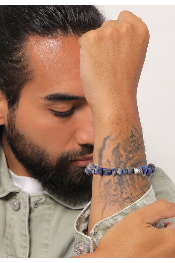 KUZZOIArmband Herren Lapis Lazuli Vintage Bead 925 Silber Silber