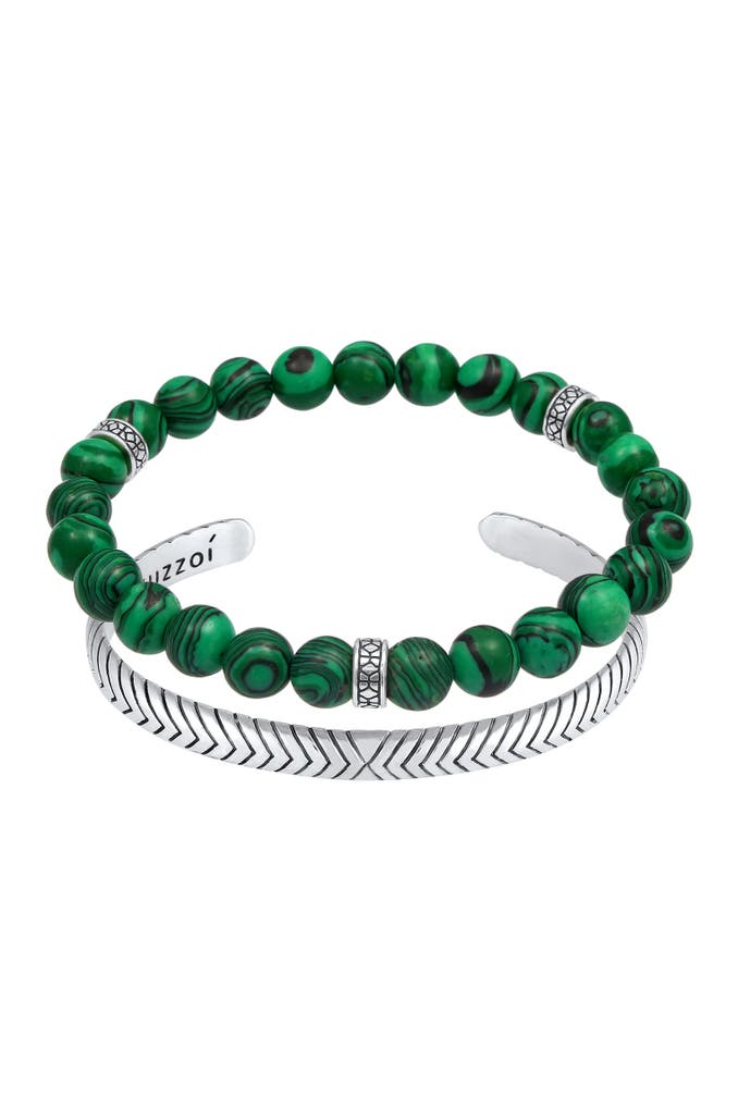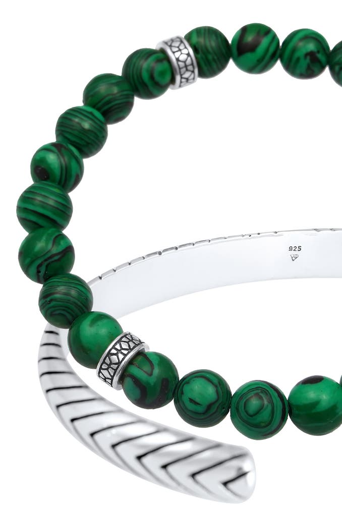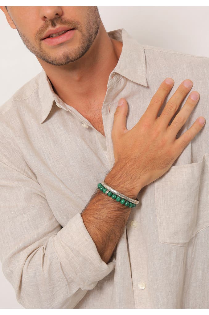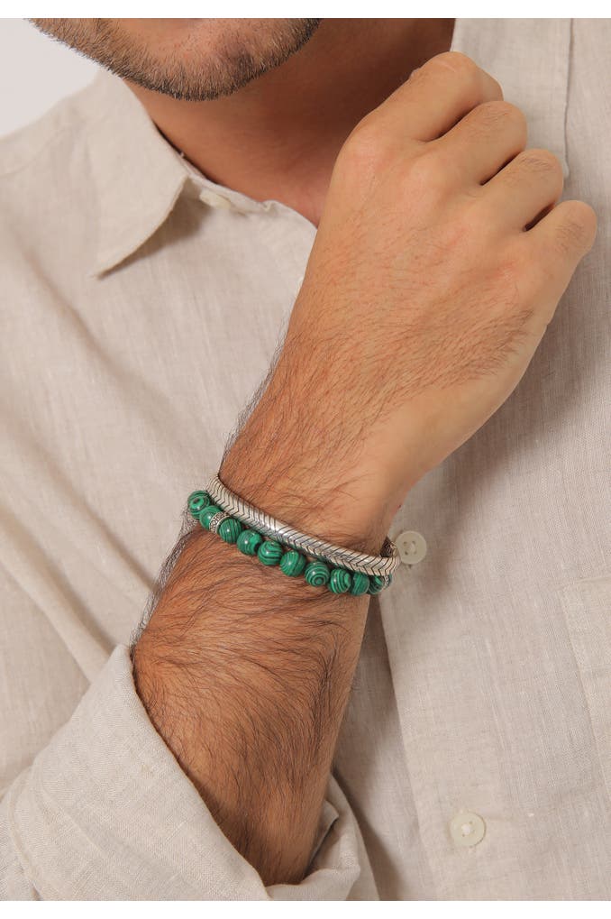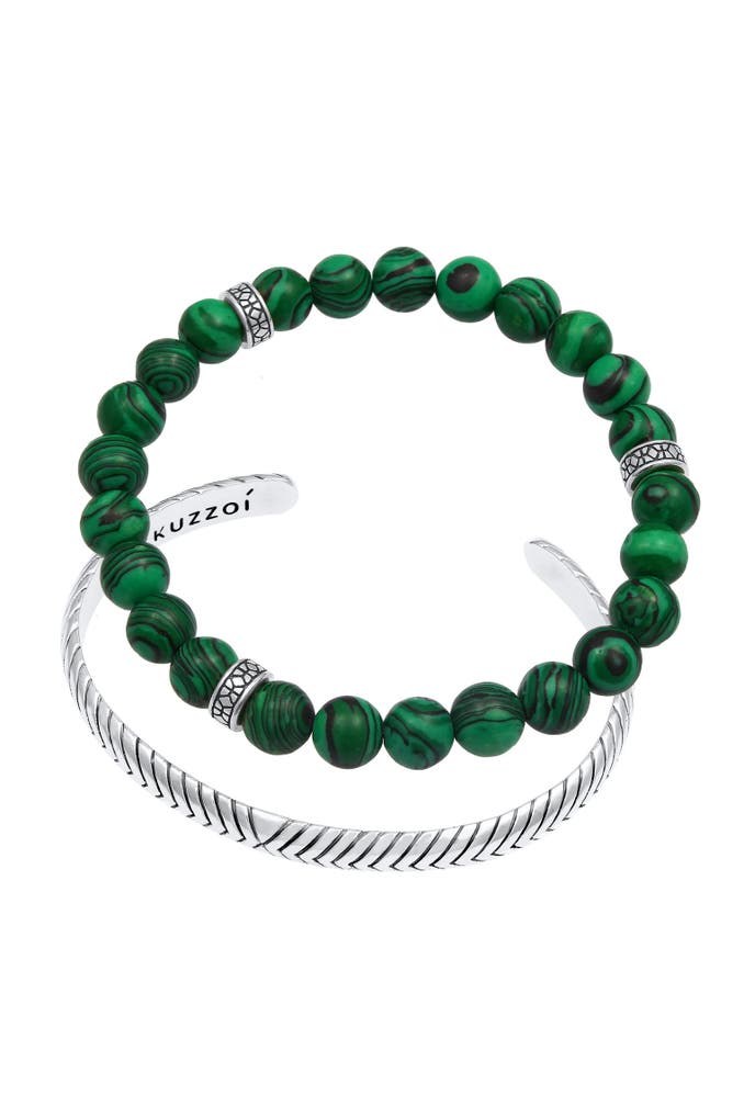 KUZZOIArmband Herren Malachit Stein Armreif Oxidiert 925er (2 tlg) Grün