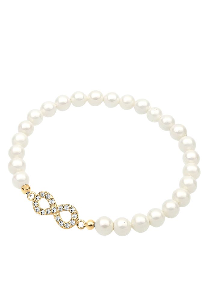 ELLIArmband Infinity Symbol Muschelkernperlen Weiß 925 Sterling Silber Gold