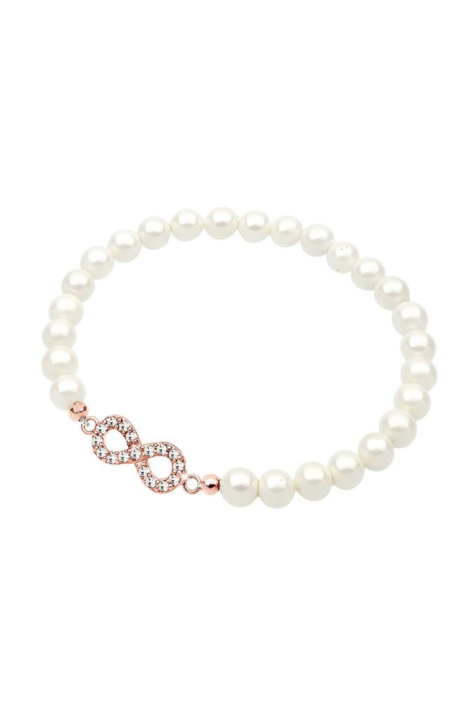 ELLIArmband Infinity Symbol Muschelkernperlen Weiß 925 Sterling Silber Rosegold