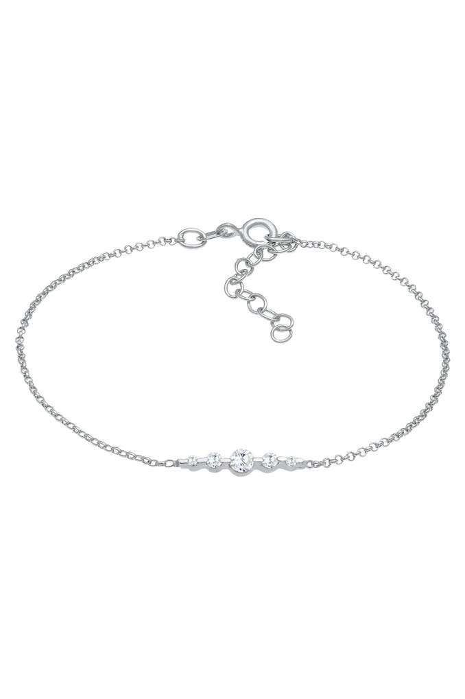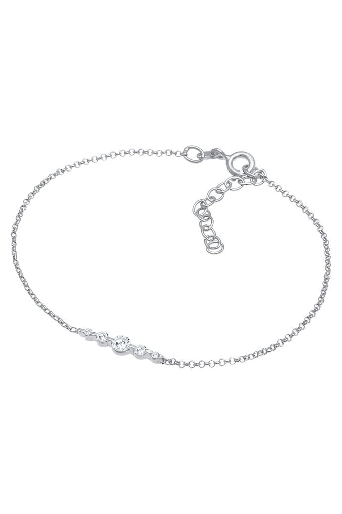 Dieses runde Erbsketten Armband, veredelt jeden Look. Fünf unterschiedlich grosse Zirkonia Kristalle, funkeln in zeitloser Eleganz am Handgelenk der Frau. Ein Schmuckstück das durch sein stilvolles Design begeistert.