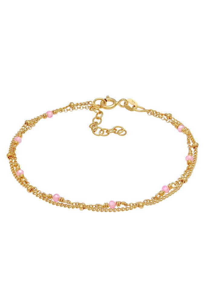 ELLIArmband Kugel Rosa Quarz Perlen Layer 925 Silber Gold