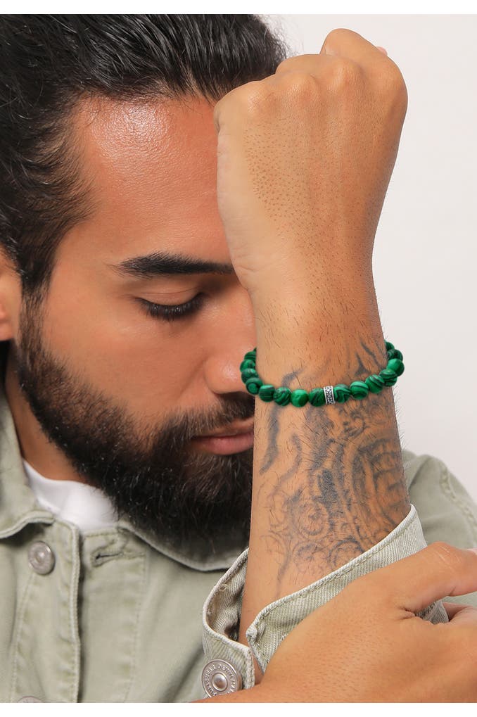 KUZZOIArmband Oxidiert Achat Grün 925er Silber