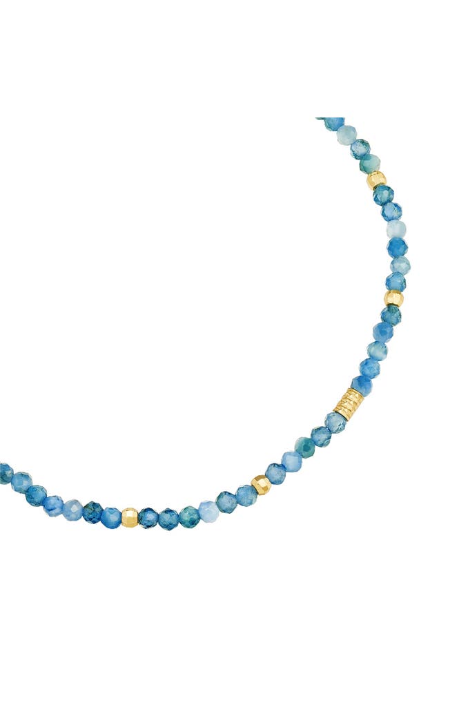Du suchst nach peppigem Edelsteinschmuck in modernen Designs? Dann wirst du dieses lässige Armband des Labels Glanzstücke München lieben. Ein Strang Naturstein-Perlen aus facettiertem Apatit umspielt dein Handgelenk und fasziniert mit der außergewöhnlichen Marmorierung des Natursteins. Eingestreute Metallperlen aus Sterlingsilber mit Gelbgold-Veredelung setzen schimmernde Kontraste. Jeder Apatit ist einzigartig und Fashionistas lieben das Geschenk der Natur aufgrund seines charakterstarken Farbspiels. Ein Verlängerungskettchen mit Federringverschluss gewährleistet eine unkomplizierte Längenanpassung.