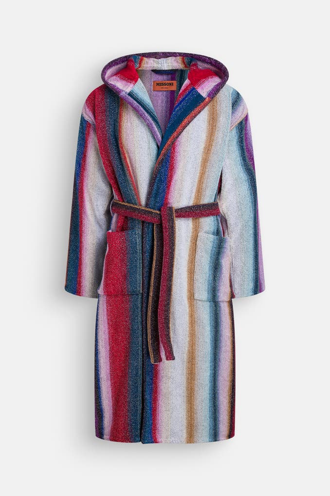 Entspannen Sie stilvoll mit dem mehrfarbigen Bademantel 'Clancy' von MISSONI! Dieser hochwertige Bademantel besticht durch sein elegantes Design und ist sowohl für Herren als auch Damen geeignet. Mit langen Ärmeln, Kapuze und einer luxuriösen Optik ist dieser Bademantel ein Must-Have für Ihre Homewear-Kollektion. Gönnen Sie sich diesen exklusiven Komfort!