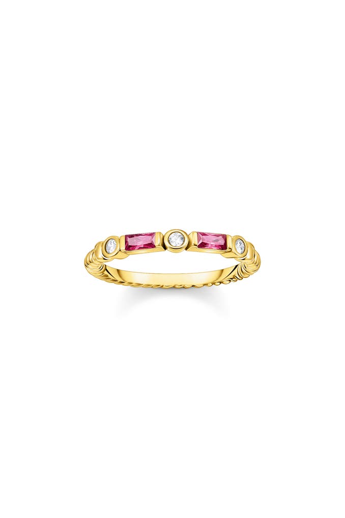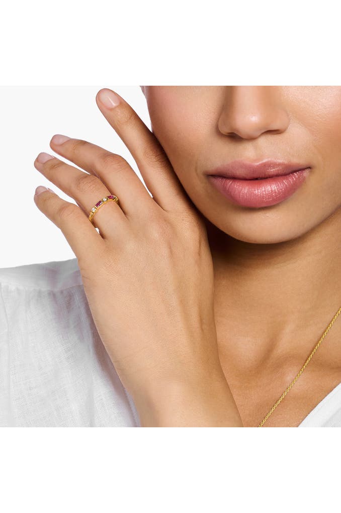 Ring Kordel mit grünen und roten Steinen vergoldet 925 Sterlingsilber, 750 Gelbgold Vergoldung