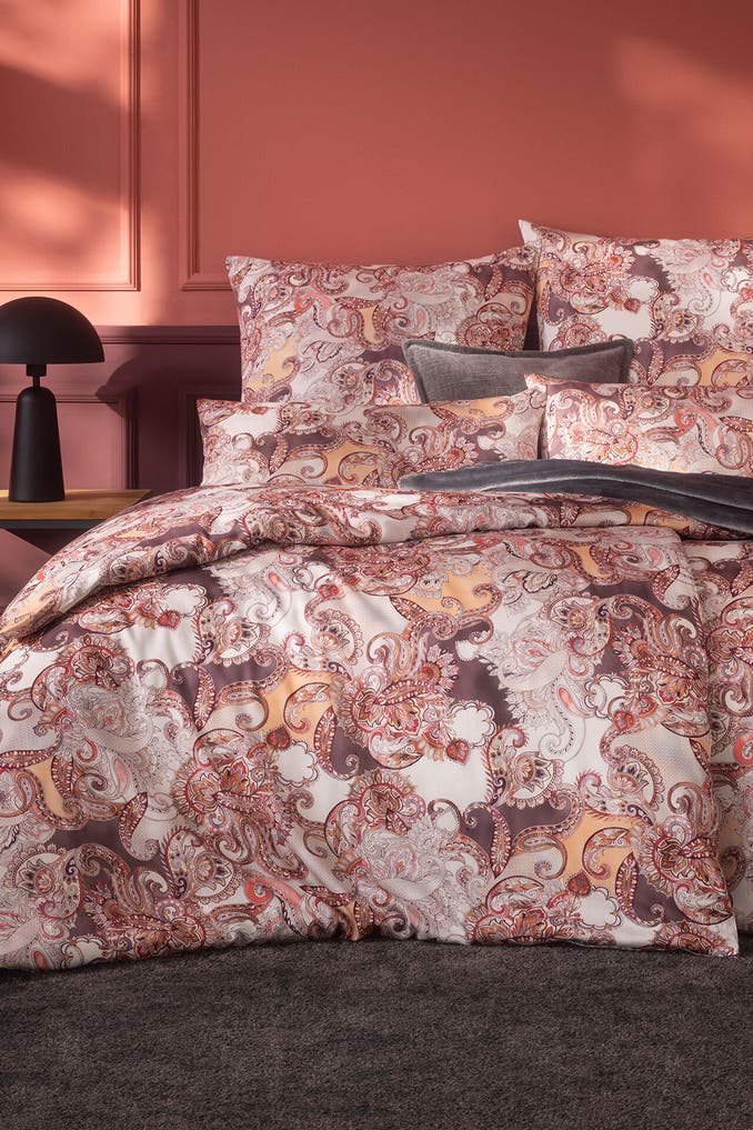 Die Bettwäsche Olessa vereint klassisches Paisley-Design mit modernen Farbwelten.Die kunstvoll geschwungenen Ornamente entfalten auf dem Hintergrund eine elegante Dynamik – perfekt für alle, die einen ausdrucksstarken Stil lieben. Die edel glänzende Oberfläche des Satin de Luxe verleiht dem Dessin eine luxuriöse Tiefe und unterstreicht den stilvollen Charakter.