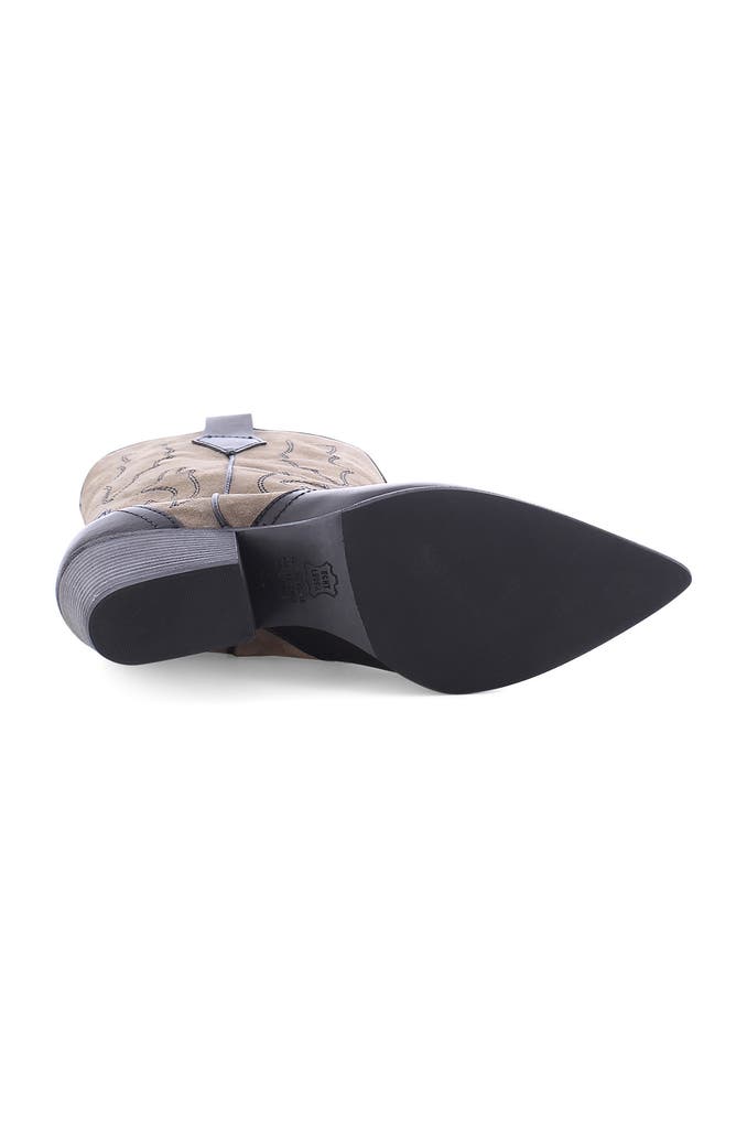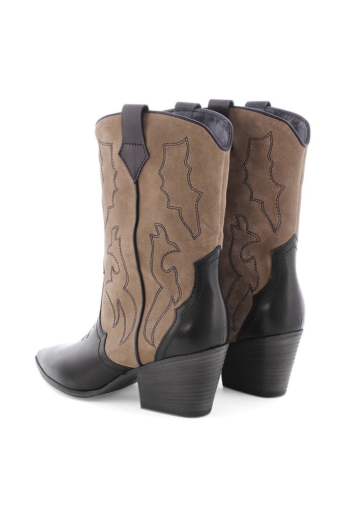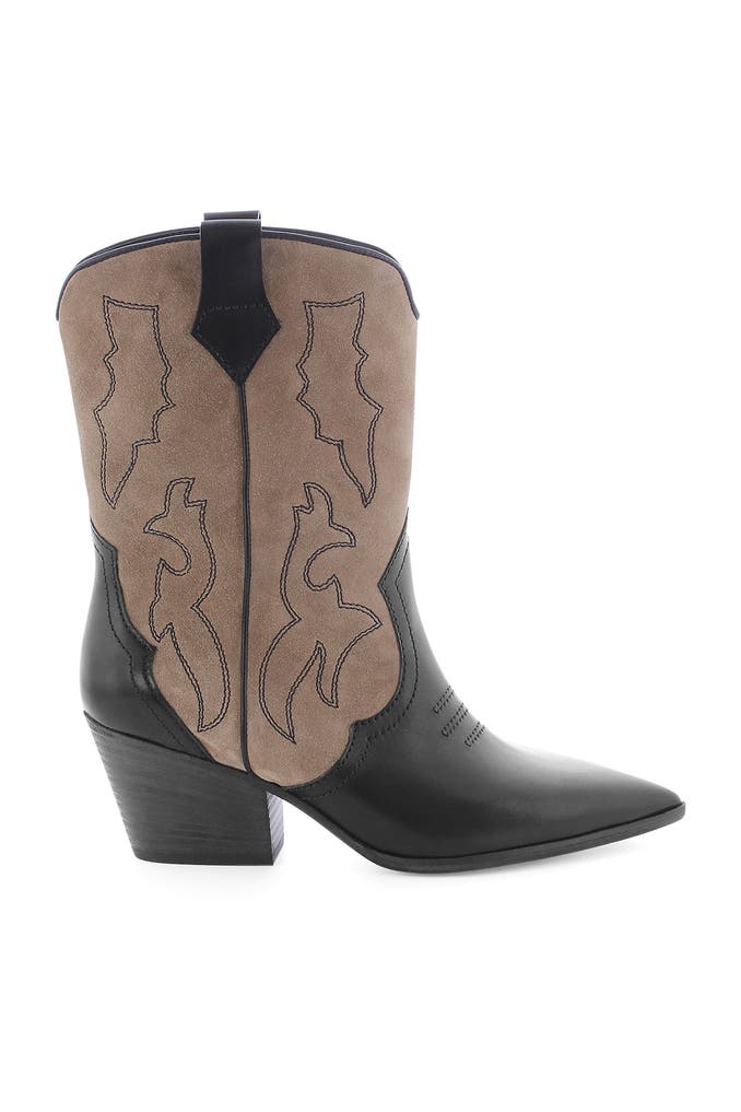 Ein trendiges Highlight der neuen Saison ist der lässige Cowboy Boot DALLAS. Die moderne Kombination aus schwarzem Kalbleder und hellbraunem Veloursleder sorgt für einen modischen Kontrast. Die authentischen Ziernähte runden den Look gekonnt ab. Der stilvolle Blockabsatz sorgt für besten Tragekomfort.