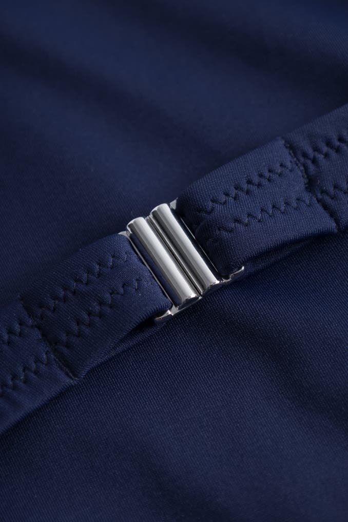 Ein besonders trendiges Bikini-Oberteil mit Ripp-Struktur. Das Modell besitzt Spacer-Cups mit Bügel sowie Träger zum Verstellen.