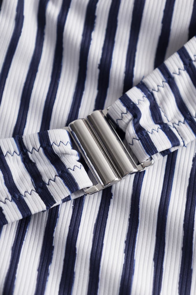 Das Bikini Oberteil im Streifen Dessin auf feiner Ripp-Struktur ist mit halt-gebenden Soft Cups, Bügeln sowie verstellbaren und abnehmbaren Trägern gefertigt. Ein Highlight bietet das Rösch Label in Koralle.