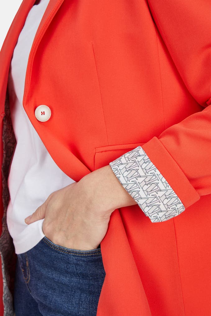 Der Girlfriend-Blazer überzeugt mit langem Revers in Spitzfacon, einem Knopf und edlen Paspeltaschen mit Patte. Der Rückenschlitz sorgt für Komfort, das hochwertige Futter mit Wording-Print und der Ärmelbeleg mit Druckfutter setzen modische Highlights. Stretchfutter in den Ärmeln bietet zusätzliche Bewegungsfreiheit. Voll gefüttert. Länge Gr. 38: 74 cm.
