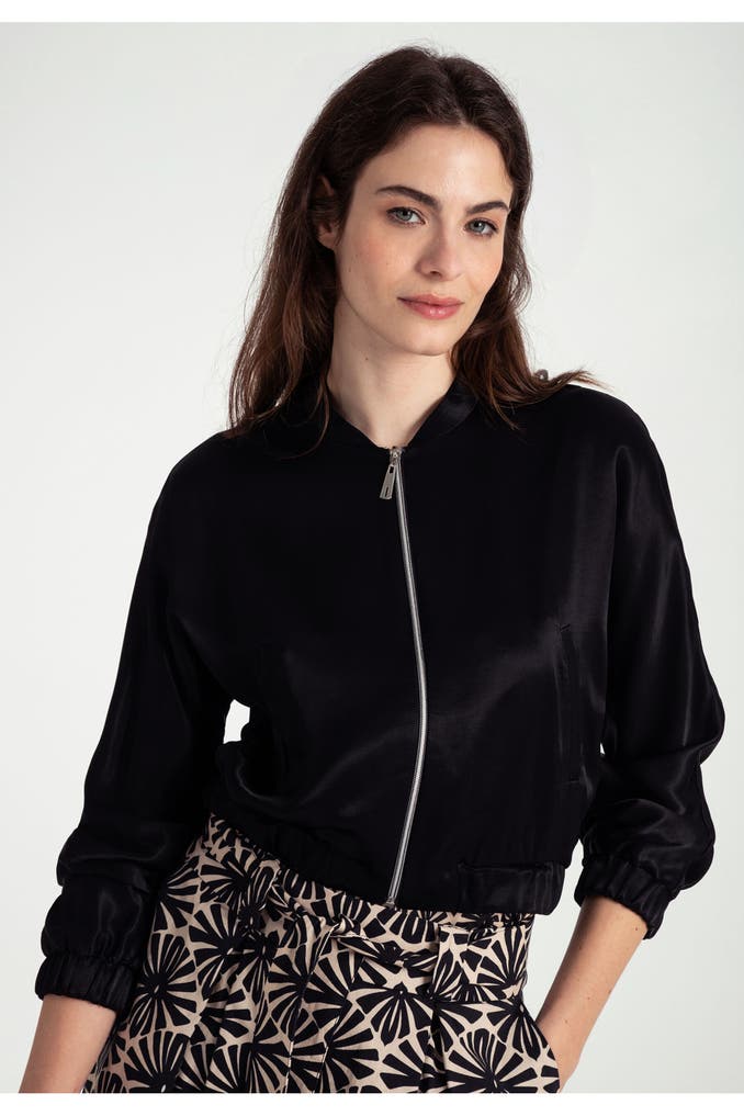 Mit dem kurzen Blouson von MORE & MORE in glänzender Satinqualität liegen Sie jetzt voll im Trend. Stylen Sie die angesagte Jacke wahlweise zu Kleidern, Röcken oder Hosen für einen modernen Look.