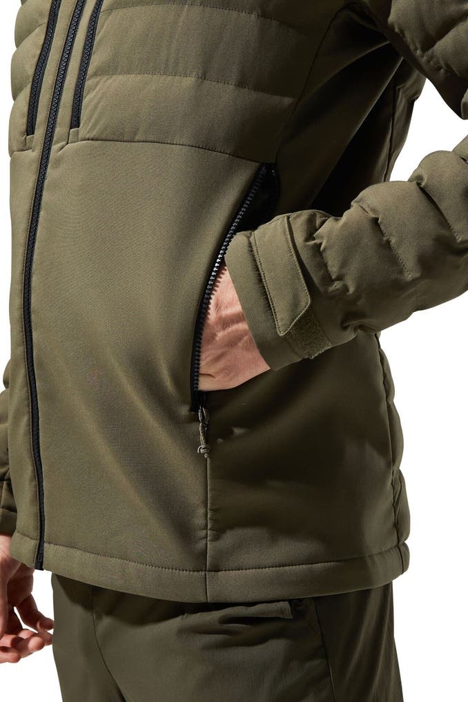 Die Theran ist eine robuste und zuverlässige Jacke, die an den wichtigsten Stellen mit einer angepassten Isolierung ausgestattet ist, um dort zu schützen, wo es nötig ist. Die Theran Hybrid Hooded Jacket wärmt dort, wo man es braucht, dank der durchdachten Isolierung am Körper. Die Hydroloft-Füllung sorgt für Wärme und Komfort, während die wasserabweisende DWR-Beschichtung vor nassem Wetter schützt. Das Zwei-Wege-Stretch-Softshell-Material der Theran macht deine Bewegungen mit. Zu den Anpassungsmöglichkeiten gehören eine verstellbare Kapuze und anpassbare Ärmelbündchen, während eine Vielzahl von Taschen für leicht zugänglichen Stauraum sorgt.
