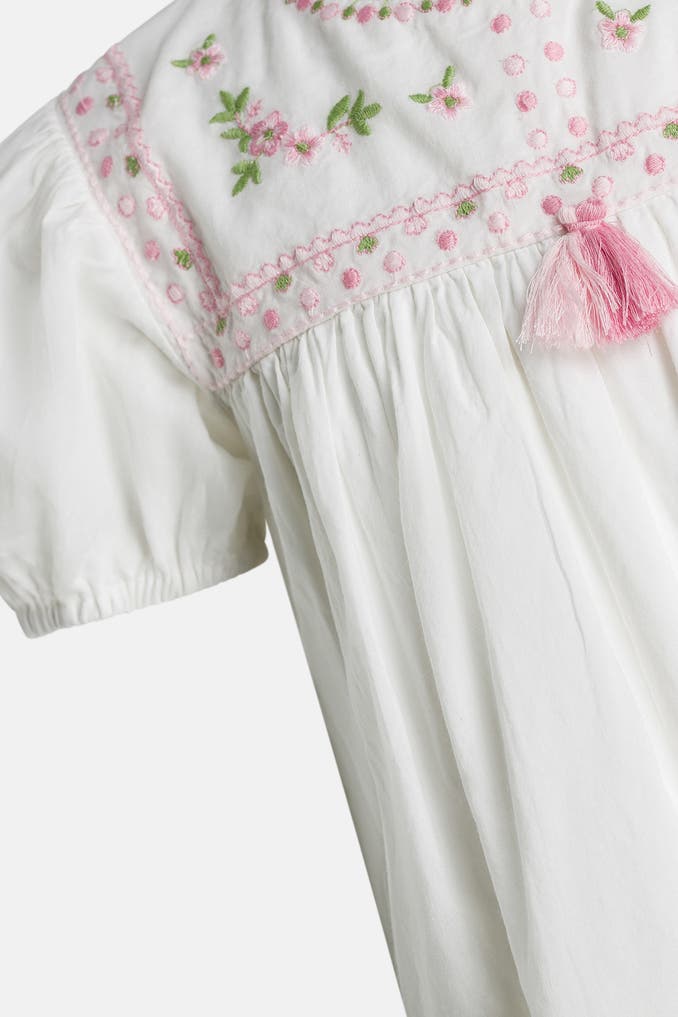 Wie wäre es mit einem Hauch von Frühling für Ihre kleine Prinzessin? Die florale Bluse in Weiß von Mayoral ist nicht nur ein echter Hingucker, sondern auch angenehm zu tragen. Der A-Linien-Schnitt sorgt für eine bequeme Passform, während die Stickerei und das florale Muster dem Look eine verspielte Note verleihen.