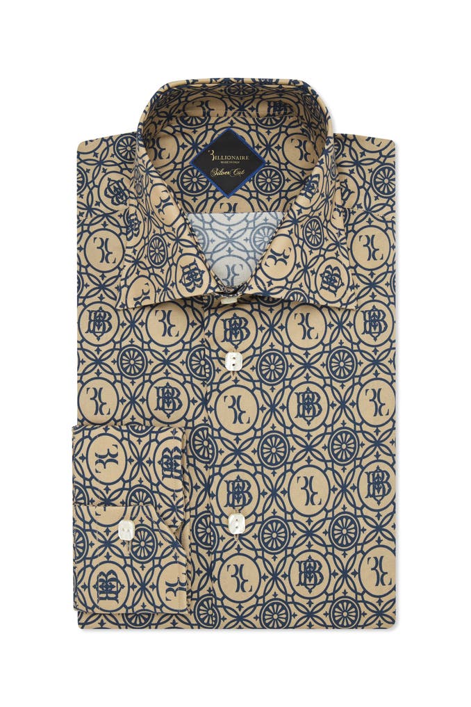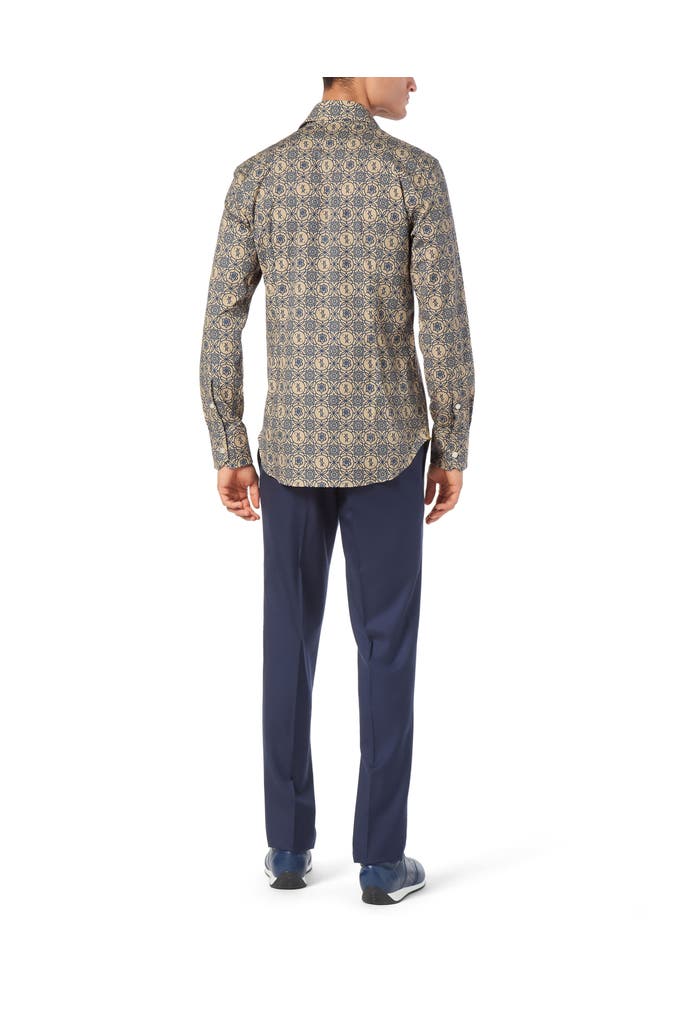 Bringen Sie etwas Kreativität in Ihre Freizeit Billionaire hat dieses Baumwollhemd mit einem originellen Musteraufdruck entworfen Erfahren Sie mehr. All-Over-Print aus Stretch-Baumwollpopeline Echte Perlmuttknöpfe mit Logo Kragen: Portocervo Abgerundeter Boden Passform: Slim Silver