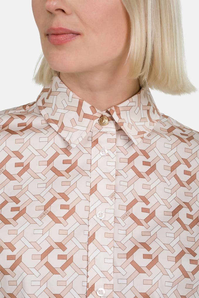 Erfrischend und feminin: Diese gemusterte Casual-Bluse 'Dea' von GUESS verleiht Ihrem Outfit eine verspielte Note. Mit dem Blusenkragen, langen Ärmeln und einer geraden Passform ist sie perfekt für entspannte Freizeit-Looks. Gönnen Sie sich dieses modische Highlight!