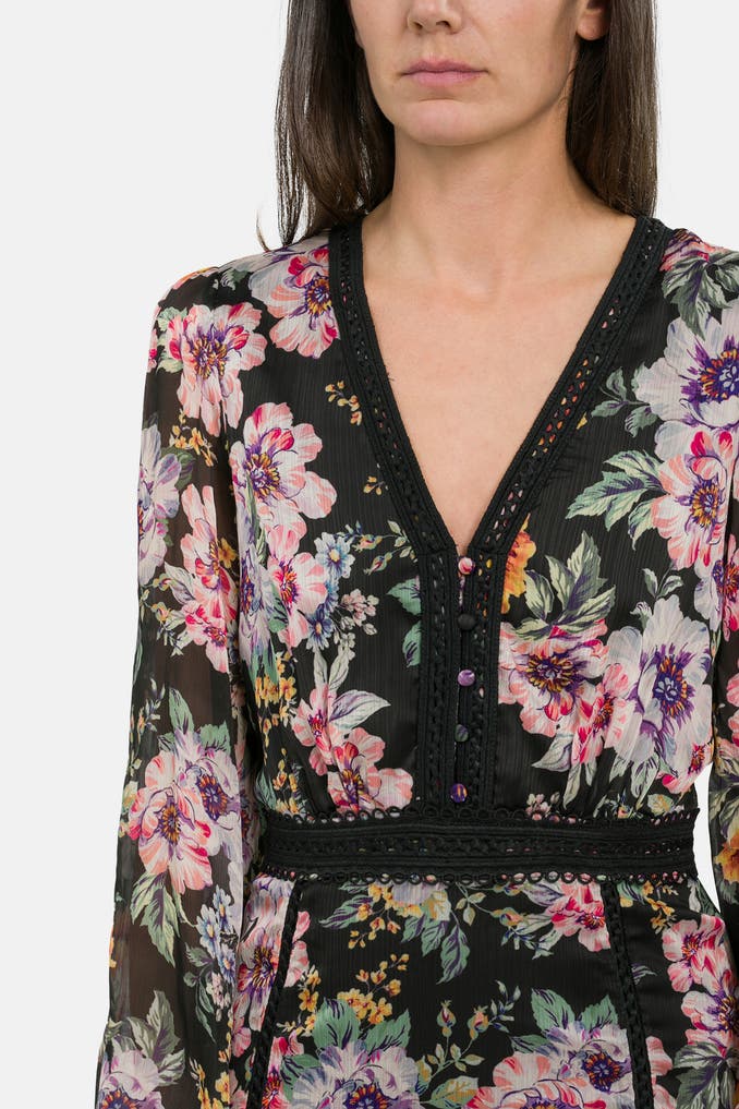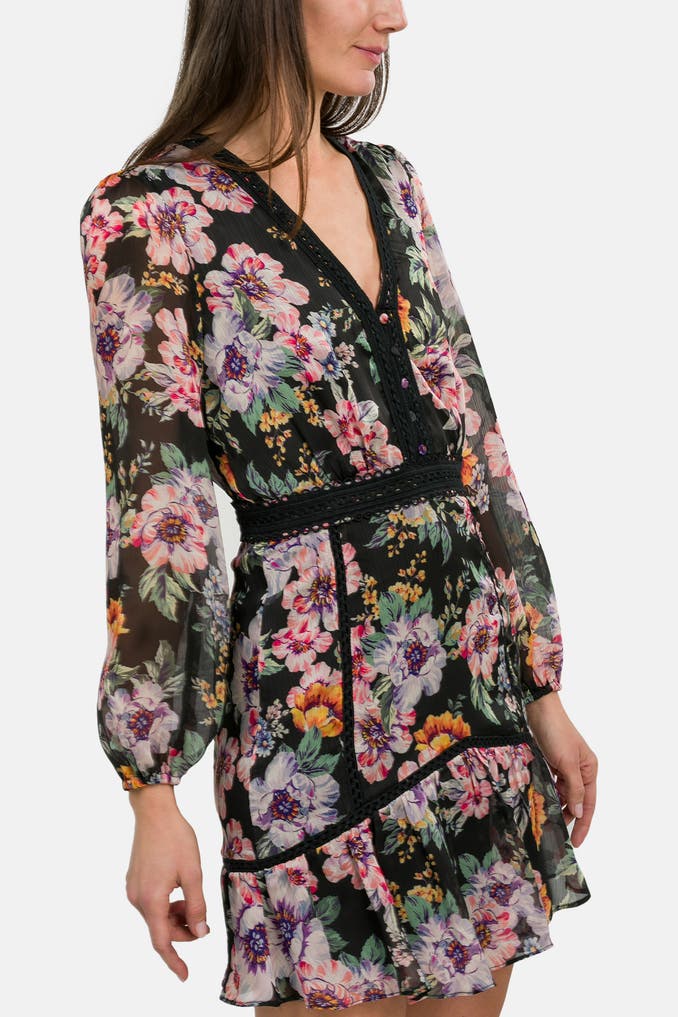 Erleben Sie das blumige Casual-Kleid 'Elana' von Guess mit seinem femininen V-Ausschnitt und der figurbetonten Passform. Das Midi-Kleid begeistert mit einem floralen Muster.