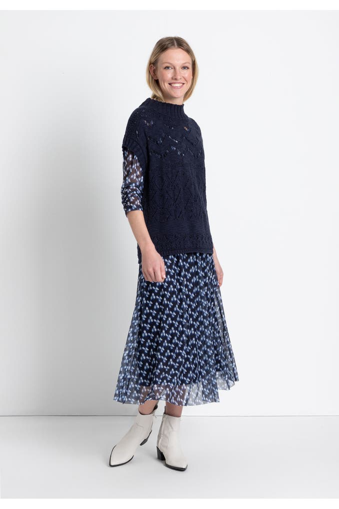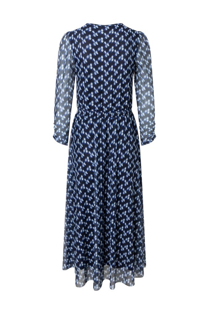 Das fließende Meshkleid von MORE & MORE mit V-Ausschnitt und modernem Dot Print auf dunkelblauem Fond kann wahlweise mit Cardigan, kurzem Blazer oder ganz pur gestylt werden und ist dazu noch wahnsinnig bequem und unkompliziert - ein perfektes Kleid für viele Gelegenheiten: City, Business, Dinner und Reisen.