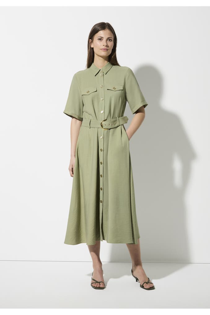 Das sommerlich-fließende Hemdblusenkleid von MORE & MORE mit taillenbetonendem Gürtel lässt sich toll stylen. Tragen Sie je nach Gelegenheit Heels, Sandalen oder Sneakers dazu, fertig ist ein moderner Look.