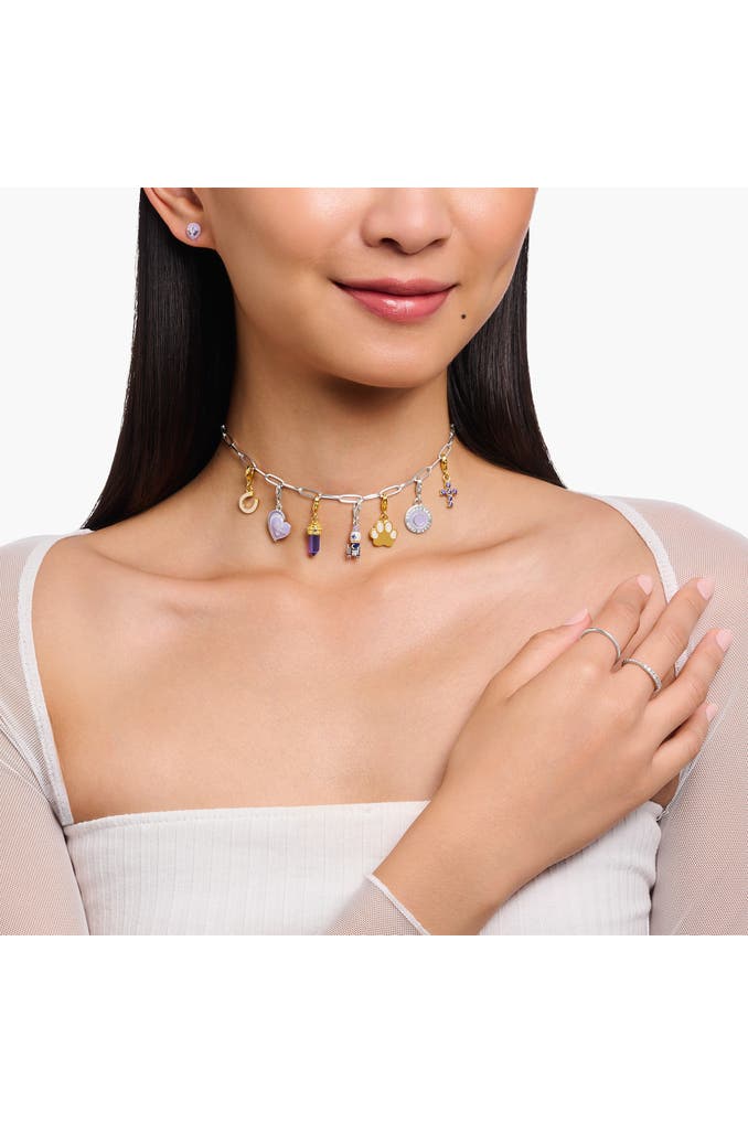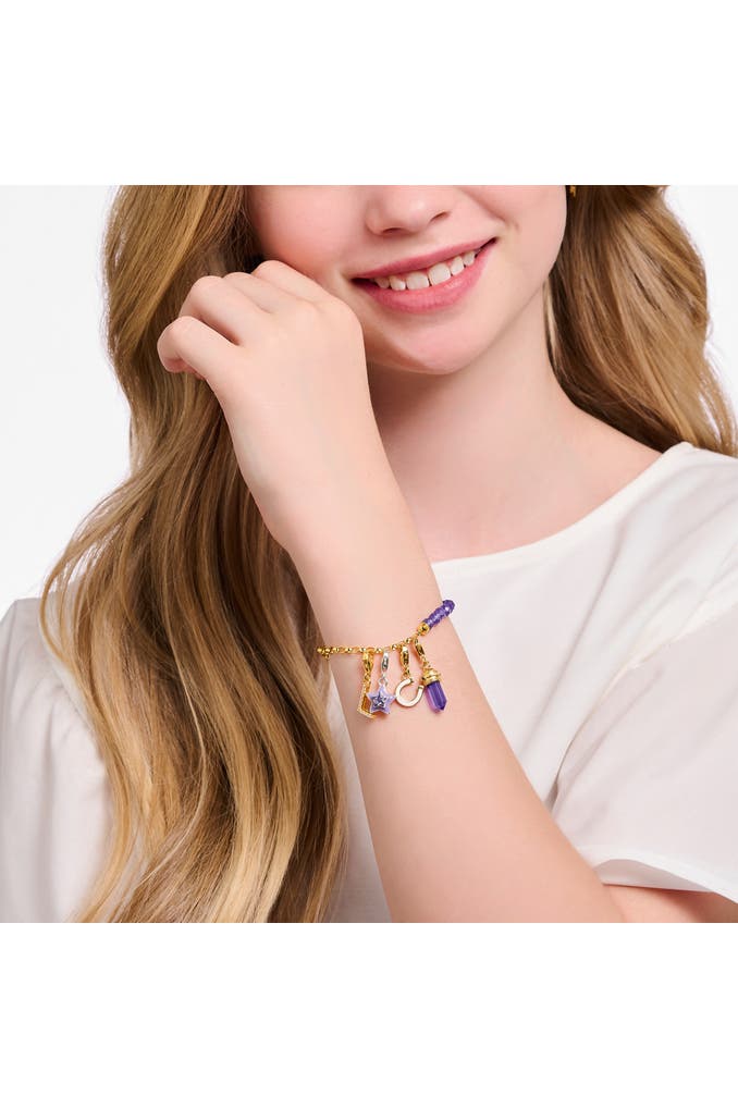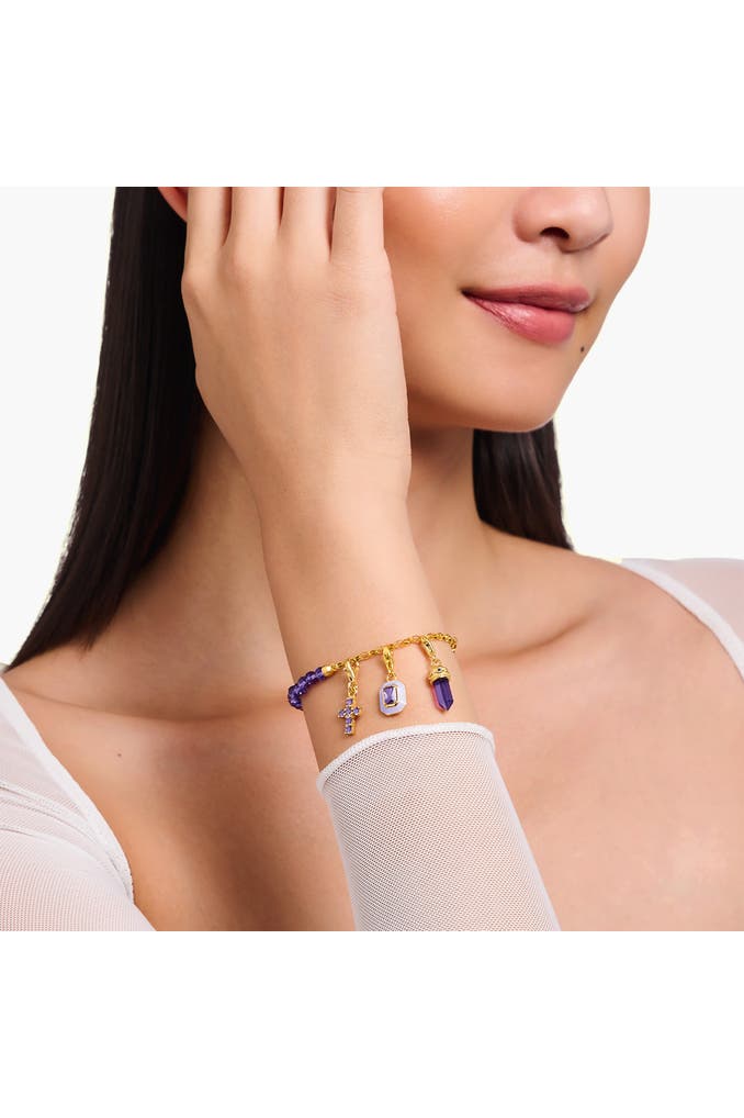 THOMAS SABOCharm-Anhänger Hexagon mit imitiertem Amethyst vergoldet 925 Sterlingsilber, 750 Gelbgold Vergoldung
