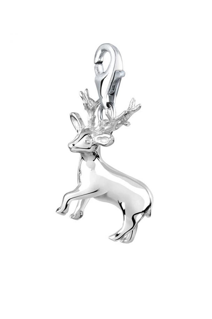 Charmanter Charm Anhänger mit Hirsch Motiv aus feinstem 925er Sterling Silber, für Dirndlliebhaber ein besonderes Highlight. Dieser tierische Hirsch-Charm ist ein majestätischer, männlicher Anhänger und stellt ein Symbol für Kraft und Langlebigkeit dar. Dieses Schmuckstück ist für alle Tier- und Wiesn Liebhaber ein Must Have zum Oktoberfest Outfit. Durch den angebrachten Karabinerverschluss passt der Charm Einhänger für allen gängigen Charm Systeme..