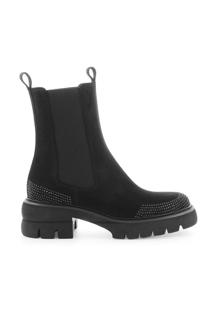 Mit funkelnden Details überzeugt der lässige Chelsea Boot PROOF. Das charmante Modell verfügt über einen leicht abgerundeten Blockabsatz, welcher für besten Tragekomfort sorgt. Die dezenten Schmucksteine akzentuieren den tonalen Look perfekt. Das schwarze Veloursleder macht unseren Schuh zum unkomplizierten Alltagsbegleiter. Die leichte Profilsohle sorgt auch bei schlechtem Wetter für besten Halt und Komfort.