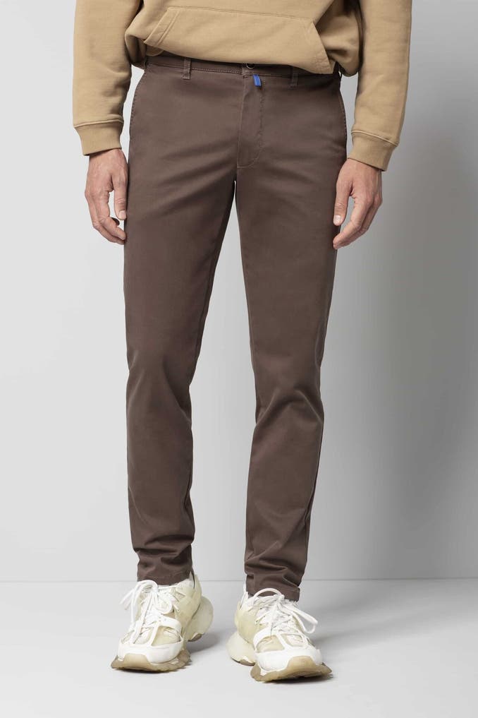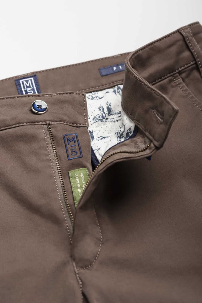 Die entspannte Chino aus der M|5 Linie von MEYER begeistert durch ihren lässigen Auftritt mit schrägen Seiten- und gepaspelten Gesäßtaschen. Perfekt abgerundet wird der Look durch den legeren Schnitt und die Verwendung von Bio-Baumwolle. Nachhaltigkeit und Verantwortung wird bei MEYER seit jeher großgeschrieben.