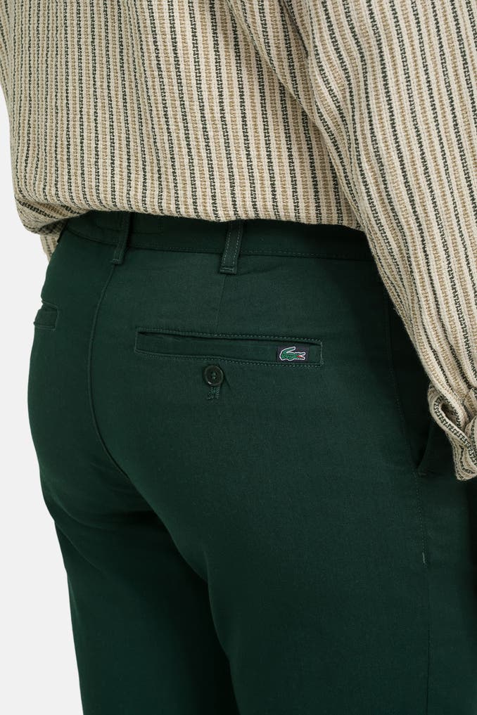Diese dunkelgrüne Chino-Shorts von LACOSTE ist ein absolutes Must-Have für Herren, die auf der Suche nach einem bequemen und dennoch stilvollen Kleidungsstück für die Freizeit sind. Hergestellt aus einem hochwertigen Baumwollmix bietet sie nicht nur einen tollen Tragekomfort, sondern auch eine perfekte Passform im Slim Fit.