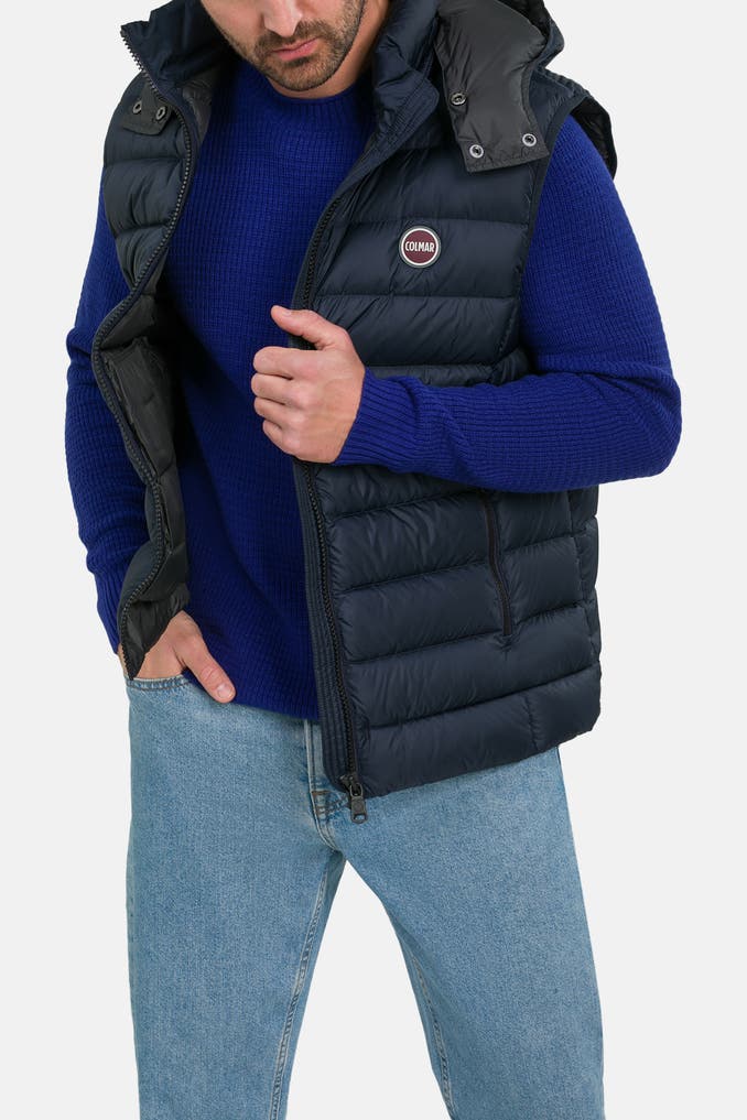 Genießen Sie den Winter in vollen Zügen mit der Navy Daunenweste von COLMAR. Der gerade Schnitt und das hochwertige Obermaterial sorgen für einen angenehmen Tragekomfort und eine optimale Passform. Die abnehmbare Kapuze sowie die praktischen Eingrifftaschen machen diese Weste zum idealen Begleiter für entspannte Freizeitaktivitäten. Entscheiden Sie sich für Qualität und Stil zugleich!