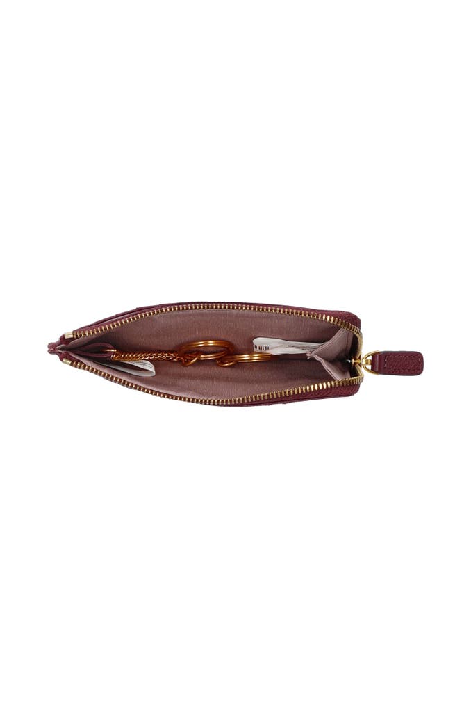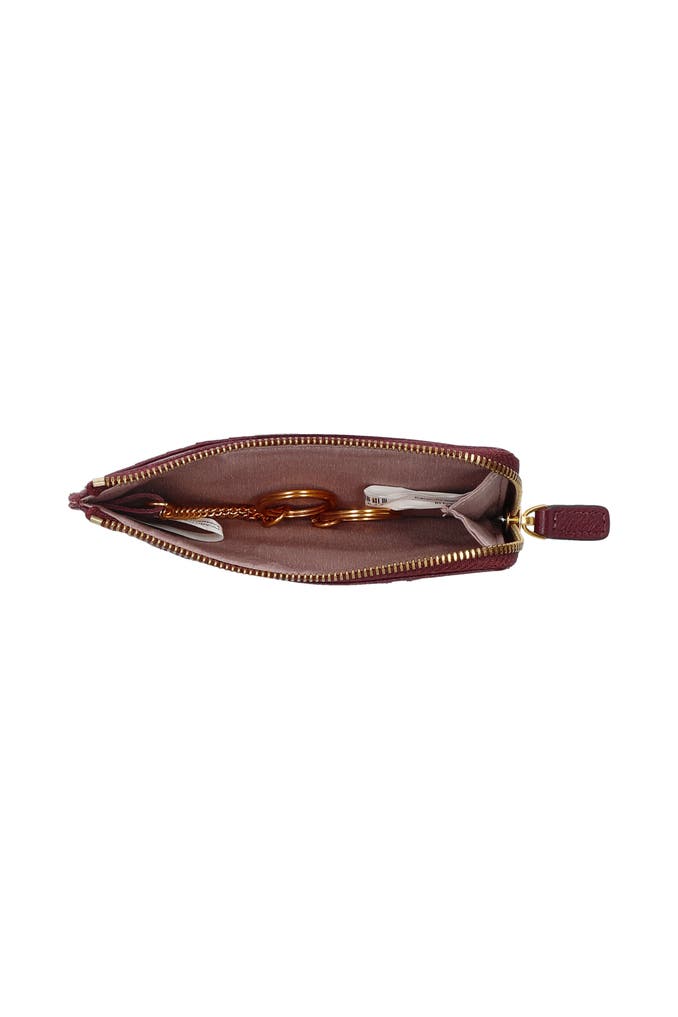 Mit diesem kleinen Schlüsseletui aus genarbtem Echtleder setzt Du ein Fashion-Statement und bleibst organisiert. Das Etui lässt sich durch einen Reißverschluss ganz einfach schließen. Das Steckfach sorgt für eine geordnete Aufbewahrung von Karten, während der integrierte Schlüsselring einen festen Platz für Schlüssel bietet. Stilvoll und immer gut organisiert!