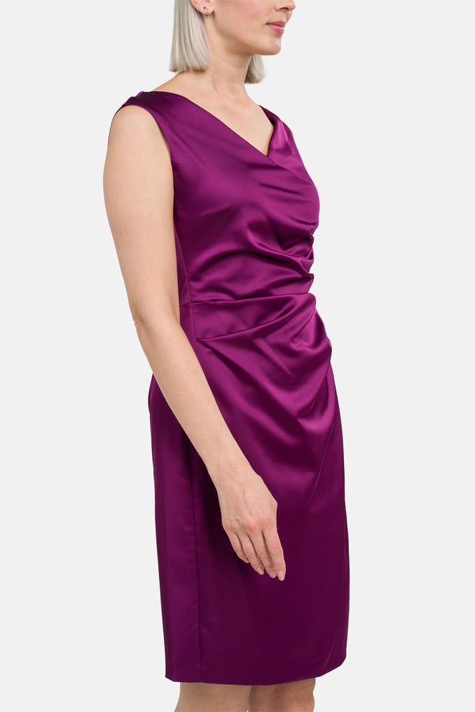 Der Traum einer jeden stilvollen Lady: Dieses Etuikleid von Vera Mont erstrahlt in einer kräftigen Satin-Optik und schmeichelt dank des taillierten Schnitts, sowie der Raffungen vorne jeder weiblichen Silhouette.