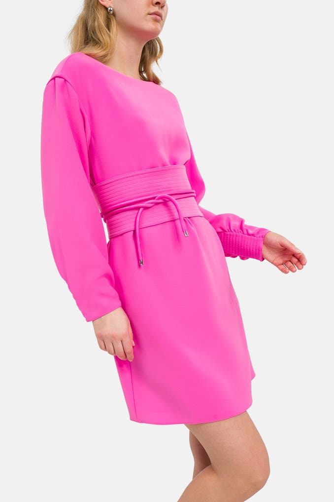 Tauchen Sie ein in die Welt der Eleganz mit dem Etuikleid in Pink von EMPORIO ARMANI. Dieses Minikleid besticht durch seinen figurbetonten Schnitt und den klassischen Rundhalsausschnitt. Entscheiden Sie sich für dieses Uni-Kleid und setzen Sie stilvolle Akzente bei jeder Gelegenheit.