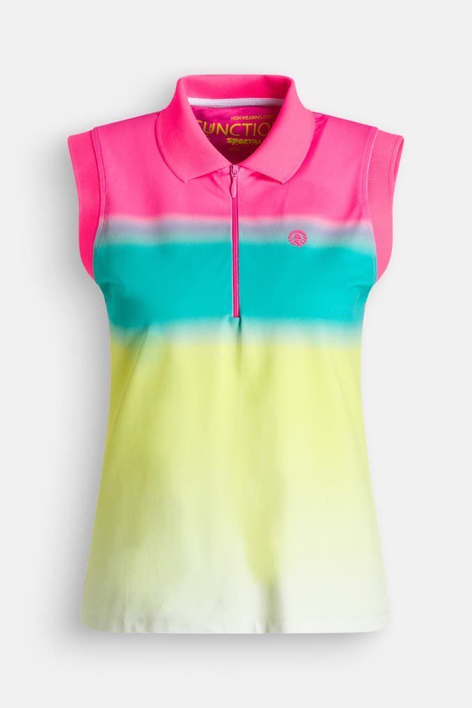 Verleihen Sie Ihrem Sportoutfit mit dem Funktionstop 'Daria' von SPORTALM einen frischen Farbtupfer! Das ärmellose Top mit Polokragen besticht nicht nur durch seine auffällige Mehrfarbigkeit, sondern auch durch das figurbetonte Design.