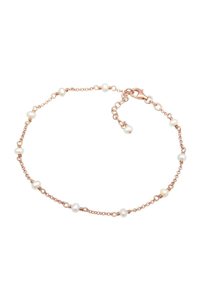 ELLIFusskettchen Fußkette mit Süßwasserzuchtperle 925 Silber Rosegold