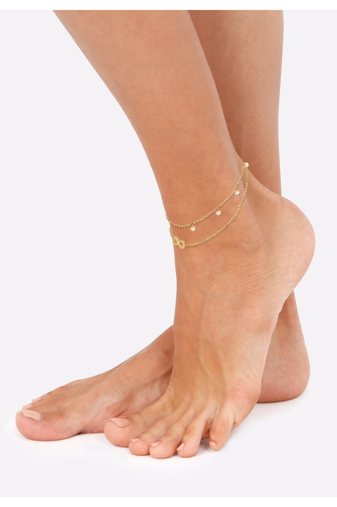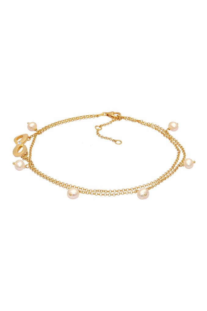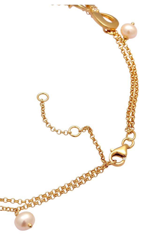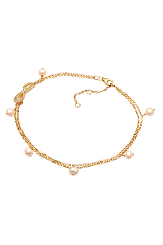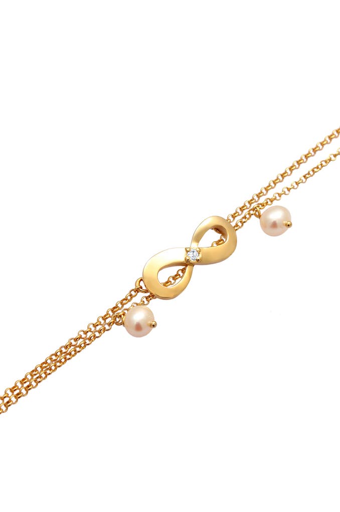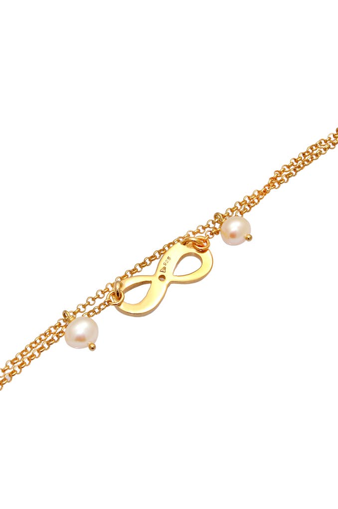 NENALINAFusskettchen Infinity Zirkonia Süsswasserzuchtperlen 925 Silber Gold
