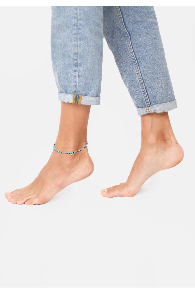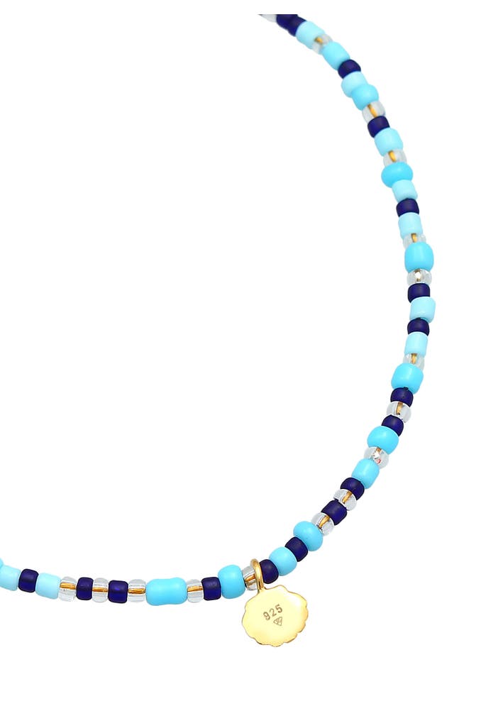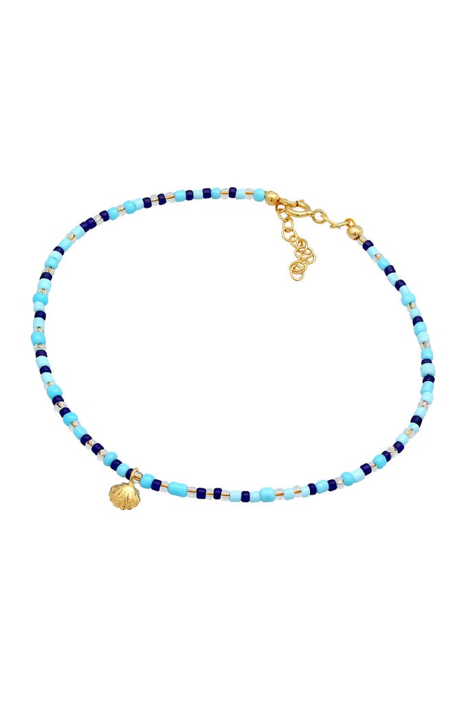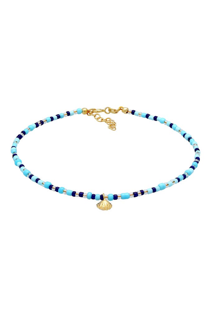 ELLIFusskettchen Muschel Glas Kugeln Bunt Sommer Beach 925 Silber Gold