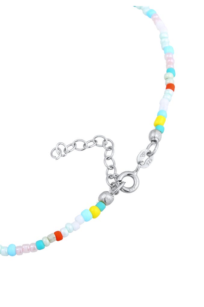 ELLIFusskettchen Muschel Glas Kugeln Bunt Sommer Beach 925 Silber Silber