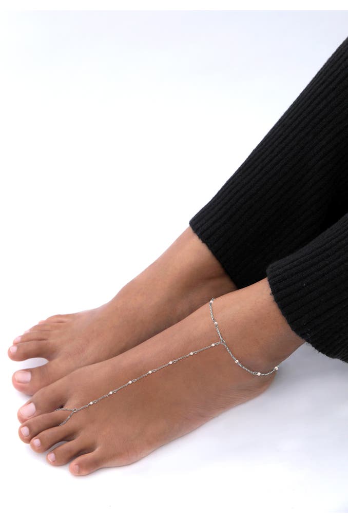 ELLIFusskettchen Muschelkernperle Fuß Chain 925 Sterling Silber Silber