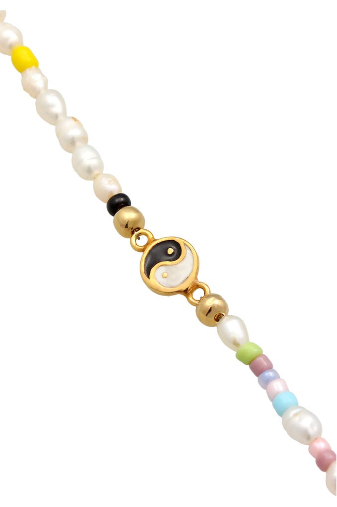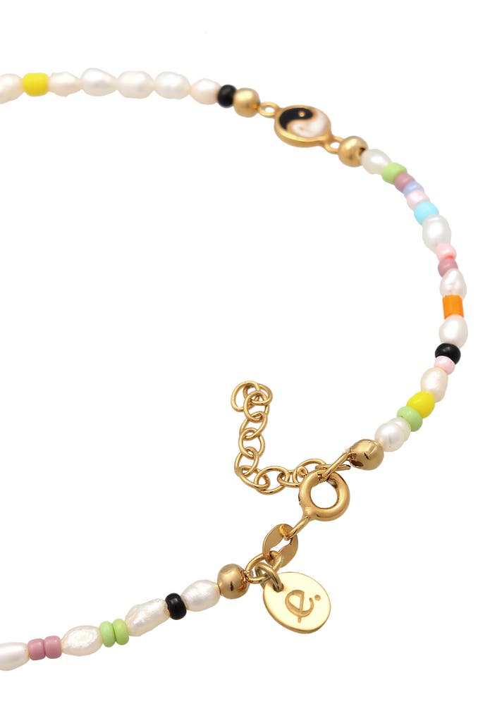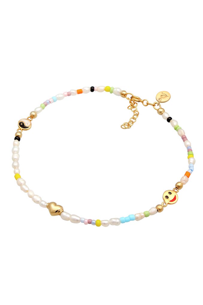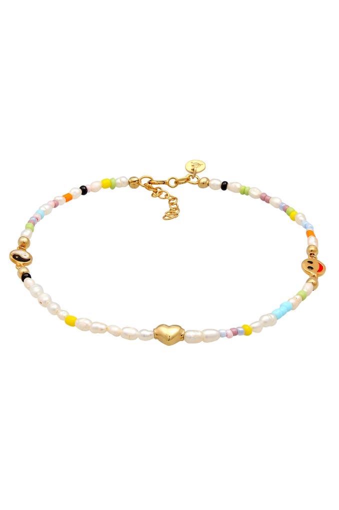 ELLI PREMIUMFusskettchen Süßwasserperlen Yin & Yang Herz Smiling 925 Silber Gold