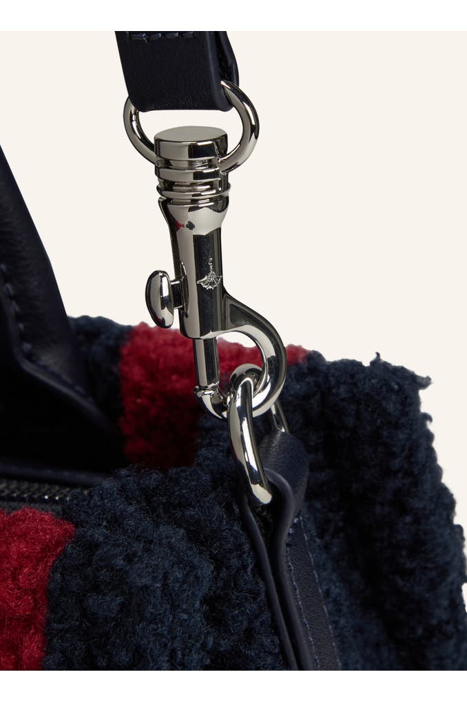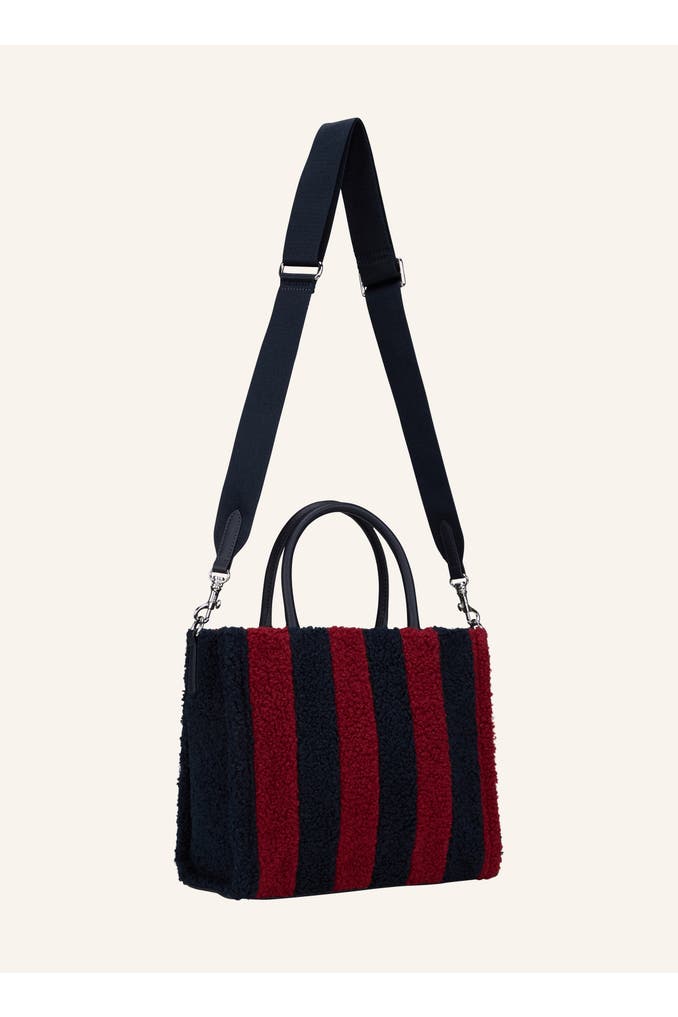 In Shearling-Optik mit Streifen und einem Frontlogo-Patch begeistert die Handtasche Squadra Aurelia als unverzichtbarer Heritage Style. Das Accessoire verfügt über einen komfortablen Zip-Verschluss sowie den labeltypischen Crossbodyriemen mit Karabiner. Erhältlich in zwei Größen.