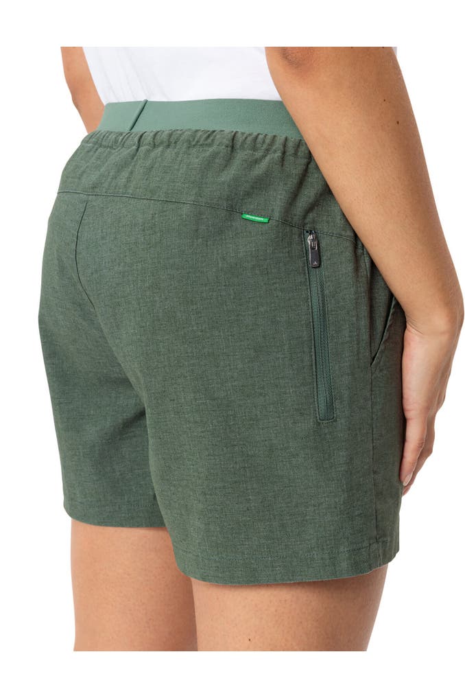Der Sommer kann kommen! Sportive, sehr bequeme Damen Shorts mit 53 % Hanf-Anteil. Hanf als nachwachsender Rohstoff kühlt an heißen Sommertagen und sieht obendrein toll aus. Die urbanen Redmont Damen Shorts in ihrer dritten Neuauflage sitzen dank Elastikbund mit Kordelzug und dem Elasthan-Anteil immer perfekt, sie sind zudem formstabil und pflegeleicht. Ausgestattet mit zwei Eingrifftaschen vorn und einer Gesäßtasche für Kleinutensilien. Das VAUDE Green Shape-Label steht für ein umweltfreundliches, funktionelles Produkt aus nachhaltigen und bluesign® zertifizierten Materialien.