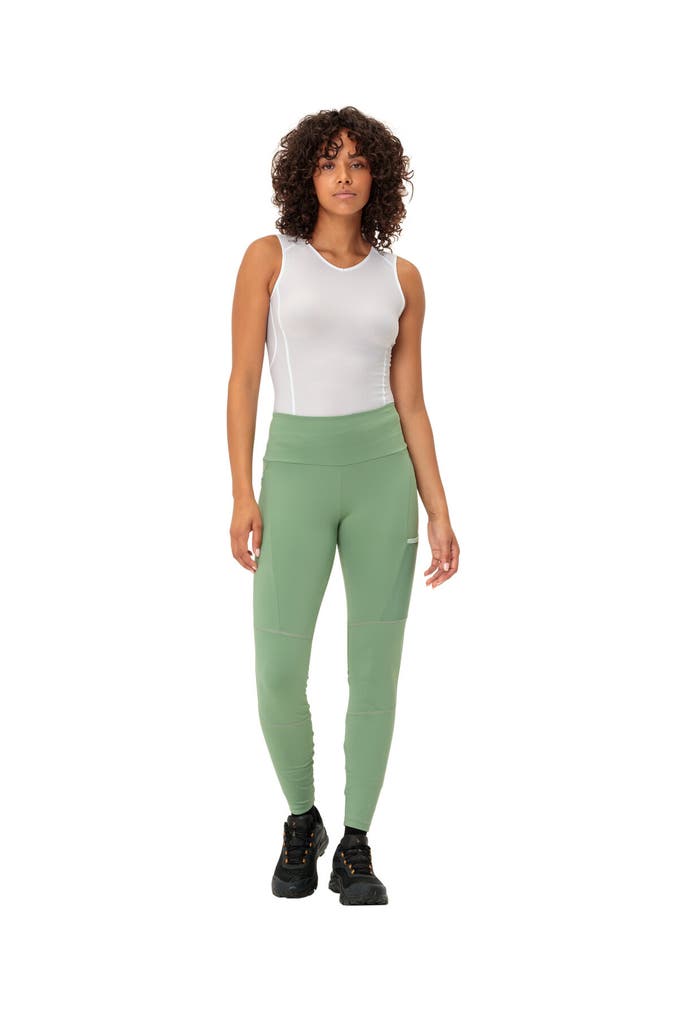 Die athletisch geschnittenen Scopi Tights sind unglaublich bequem und perfekt für schnelle Bergtouren und bewegungsintensive Sportarten! Der hohe Elastan-Anteil sorgt für einen optimalen Tragekomfort und maximale Bewegungsfreiheit, der hohe Formbund bietet einen perfekten Halt am Körper. Leichtes, aber dennoch abriebfestes Gewebe sorgt für zusätzlichen Schutz im Sitz- und Kniebereich. Mit schnell zugänglicher Mesh-Tasche und einer kleinen Reißverschlusstasche für Kleingeld oder Schlüssel. Das VAUDE Green Shape-Label steht für ein umweltfreundliches, funktionelles Produkt aus nachhaltigen Materialien.
