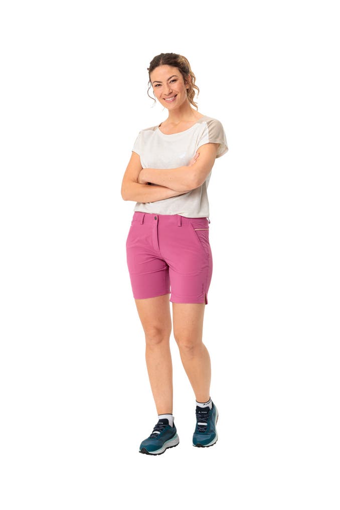 Die Women's Skomer Shorts III aus umweltfreundlich hergestelltem 4-Wege-Stretchmaterial sind pflegeleicht, rasch trocknend, bieten viel Bewegungsfreiheit. Sie verfügen über zwei praktische Fronttaschen mit Reißverschluss und eine Gesäßtasche. Das Stretchmaterial der Women's Skomer Shorts III besteht aus Recyclingpolyester mit hohem Elasthananteil und ist somit jetzt noch umweltfreundlicher.