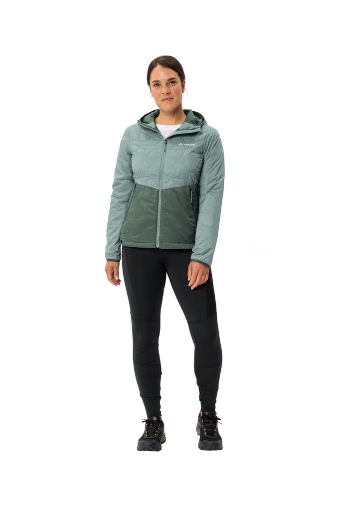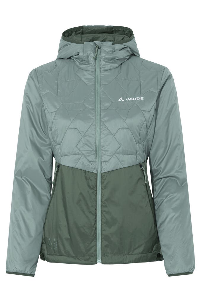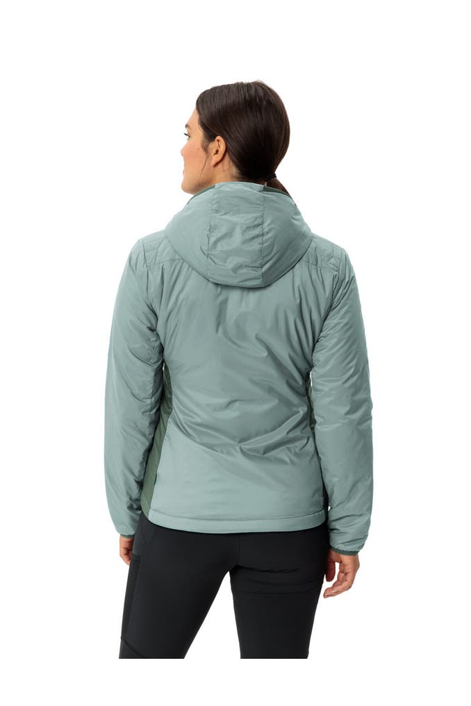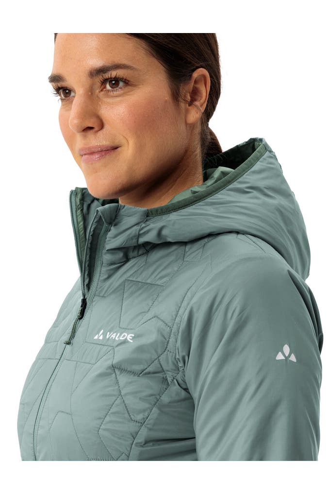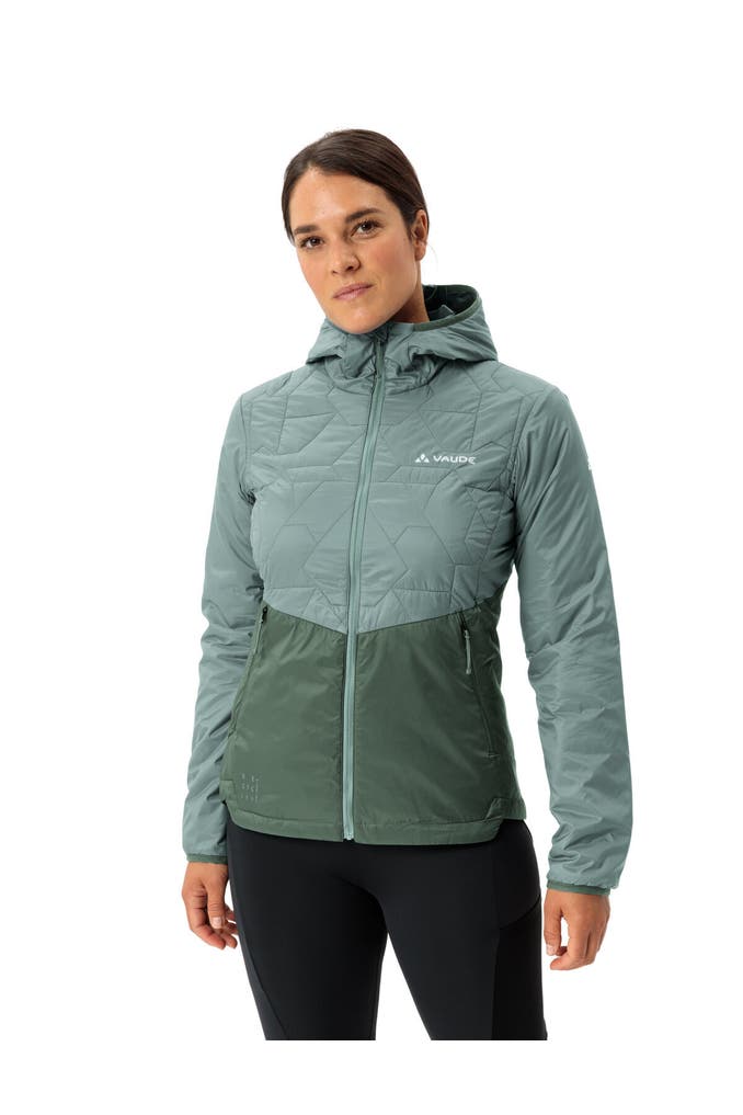 Egal ob Bergtour, Klettersteig oder kurze Wanderung: Wer im alpinen Gelände unterwegs ist, muss stets damit rechnen, dass das Wetter umschlägt. Die leichte Freney VI Isolationsjacke für Damen lässt sich super klein in der eigenen Fronttasche verstauen und ist so der ideale Wärmespender zum Immerdabeihaben. Anders als Daune hält die Kunstfaserfüllung auch in feuchtem Zustand zuverlässig warm. Perfekt für sportliche Aktivitäten, bei denen Frau auch schon mal ins Schwitzen kommt. Die eng anliegende Kapuze und der einhändig regulierbare Bund halten kalten Wind draußen. Alpines Design: Die beiden Reißverschluss-Fronttaschen sind so positioniert, dass sie auch bei angelegtem Klettergurt problemlos zu erreichen sind. Und dank der vorgeformten Ärmel rutscht die Jacke auch bei hohen Griffen über Kopf nicht aus dem Gurt. Der abriebfeste Oberstoff der Freney VI Isolationsjacke für Damen ist mit Eco Finish PFC-frei wasser- und schmutzabweisend ausgerüstet. So kann die Jacke nicht nur als wärmende Schicht unter einer Hardshell, sondern auch solo als äußere Lage getragen werden. Das VAUDE Green Shape-Label steht für ein umweltfreundliches, funktionelles Produkt aus nachhaltigen Materialien. Als Mitglied mit Leader Status bei der unabhängigen Organisation Fair Wear engagiert sich VAUDE für faire Arbeitsbedingungen und faire Löhne.