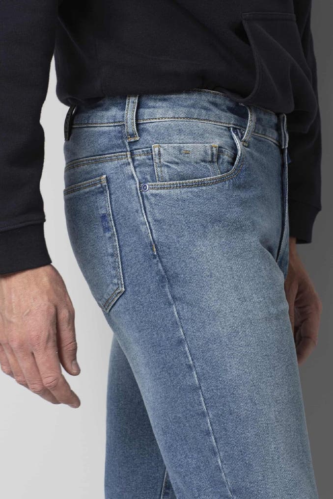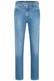 M|5 SLIM - diese moderne Five Pocket vereint eine schlanke Silhouette mit maximalem Tragekomfort. Für einen kernigen Look wurde der dunkelblaue Denim mit dem Overdyed-Verfahren überfärbt. Dank der Super Stretch Verarbeitung punktet diese Five Pocket mit perfekten Recovery-Eigenschaften, ist extrem formstabil und langlebig. Der elastische Stoff sorgt zusammen mit der besonderen Rundbundverarbeitung und der zusätzlichen Gürtelschlaufe für den perfekten Sitz. Aufwändige Details wie der blaue Logo-Knopf, die Coin Pocket in der rechten Vordertasche sowie das buntgewebte Innenfutter verleihen dieser M|5 Five Pocket das gewisse Etwas.